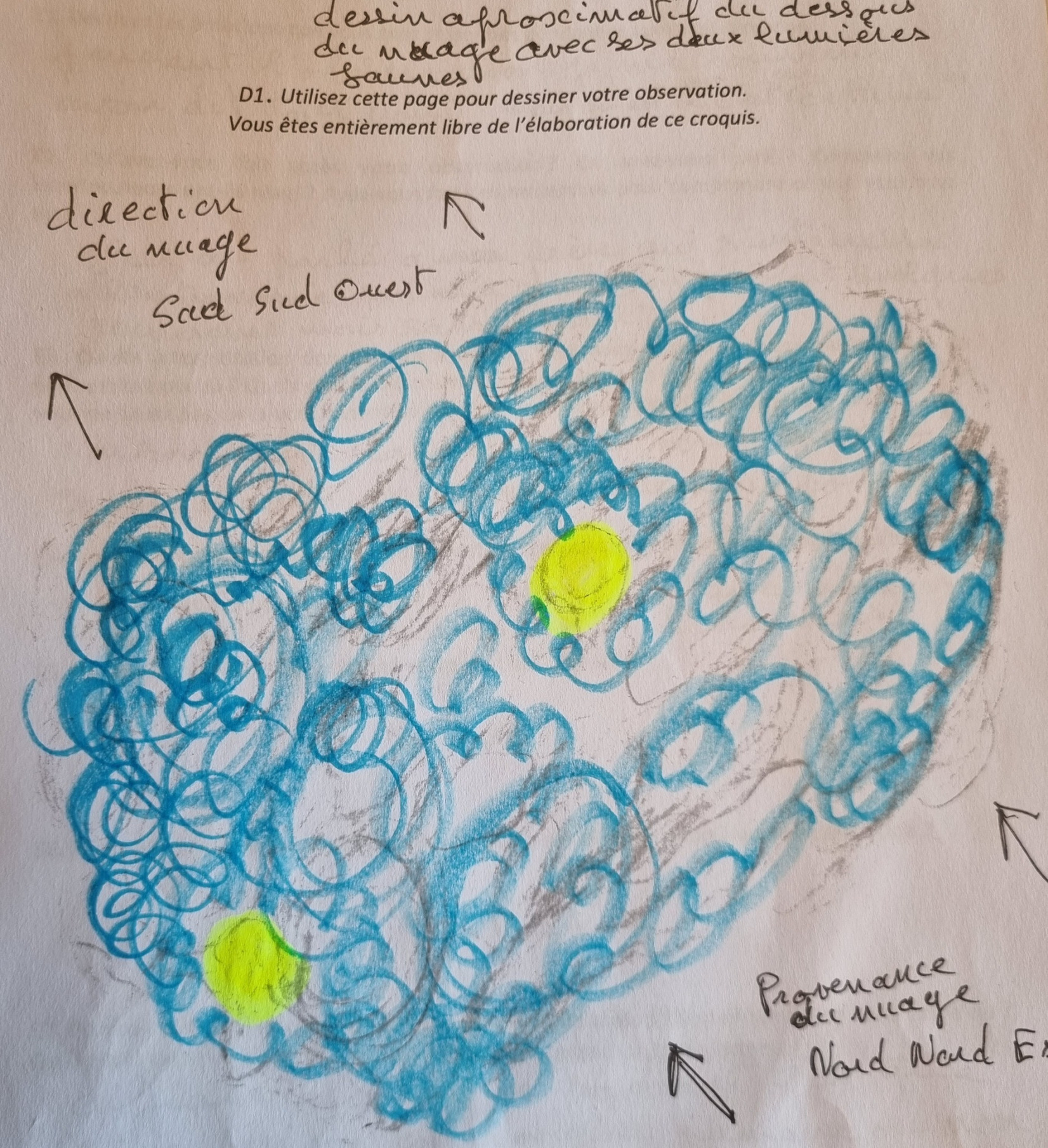 Le dossier déposé quelques jours après auprès du G.E.I.P.A.N est resté sans réponse à ce-jour. L' enquête de terrain sur les lieux de l'observation avec le témoin réalisée par nos soins est terminée.