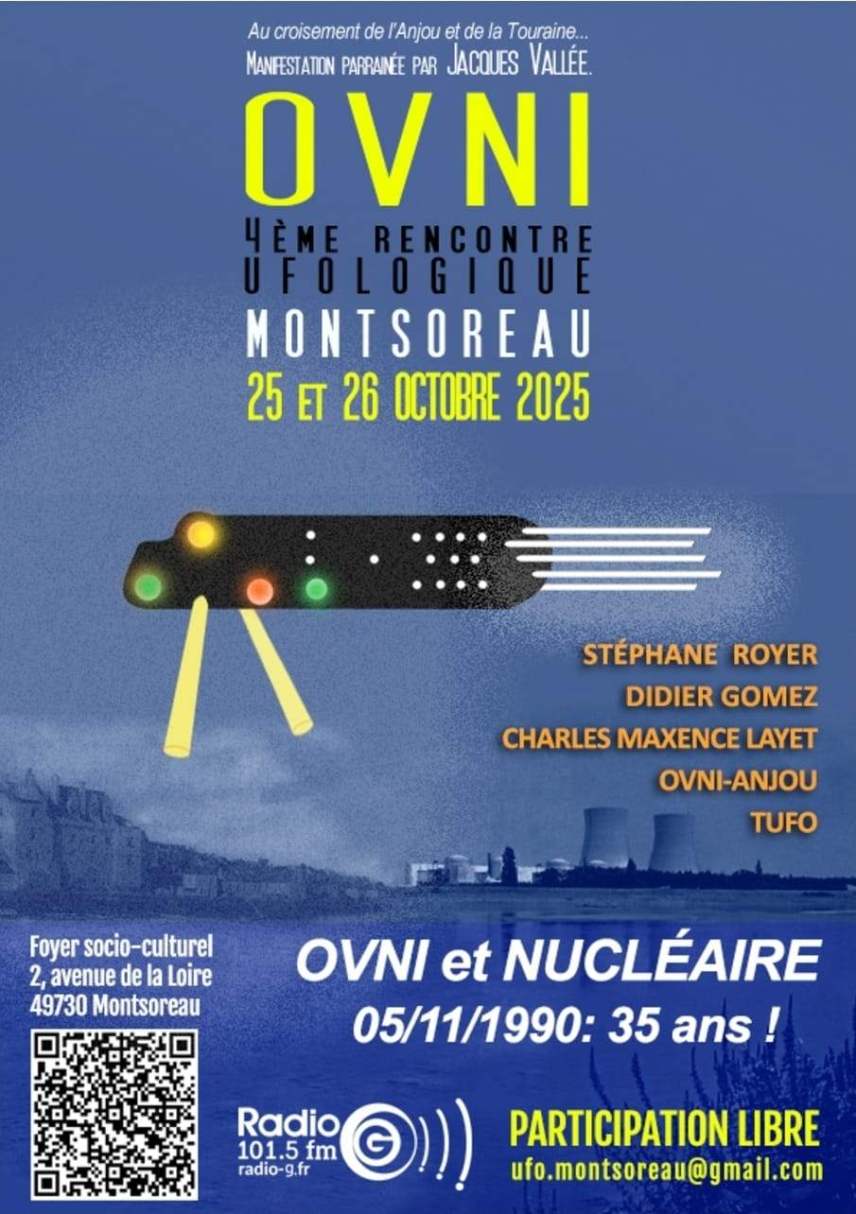Frédéric Brochard (Ovni Anjou) et Didier Gomez présentent pour la 4 ème Rencontre Ufologique de Montsoreau (49), la célèbre vague d'ovnis du 05 novembre 1990 avec une sélection de cas extraordinaires. Suivie d'un moment d'échanges avec le public.